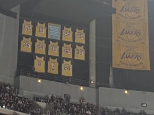 レイカーズの選手の永久欠番が飾ってあります。