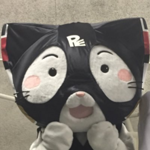 チームカラーである「黒」の覆面をつけた白い猫の形をしているキャラクターです。